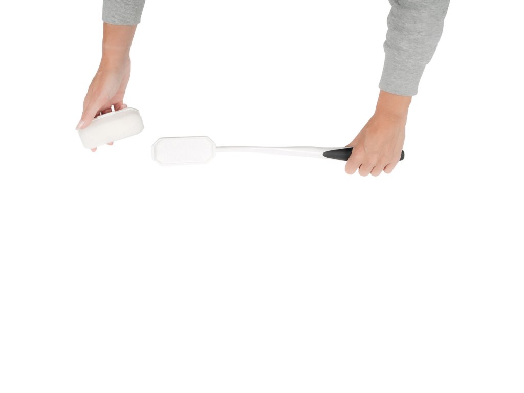 Ergonomicky navržený aplikátor pleťového mléka s prodlouženou rukojetí vám pomůže snadno aplikovat (bezalkoholové) tělové mléko nebo opalovací krém. Prodloužená rukojeť zajišťuje, že se dostanete na obtížná místa na těle, například k mytí zad, bérců nebo chodidel. Houbu lze vyměnit. Protiskluzová rukojeť poskytuje extra uchopení.