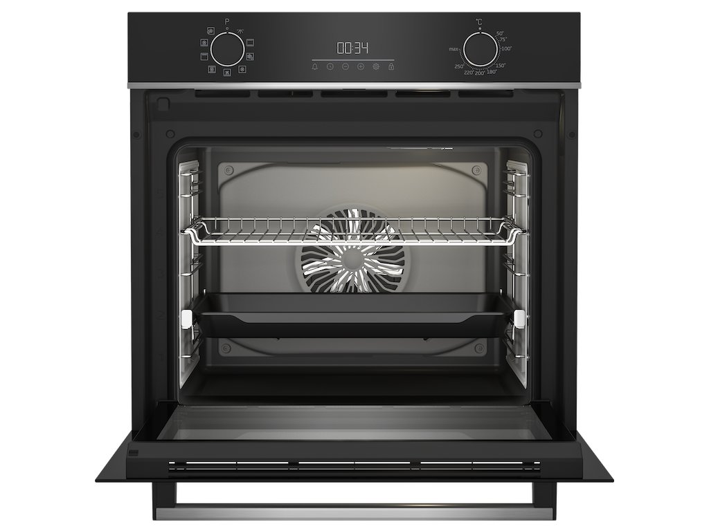 Program 3D pečení kombinuje horní a spodní ohřev se zadním ohřevem z kruhového topného tělesa a s ventilátorem. Teplo tak jde ze všech tří stran trouby, takže se jídlo propeče rychleji a rovnoměrně.