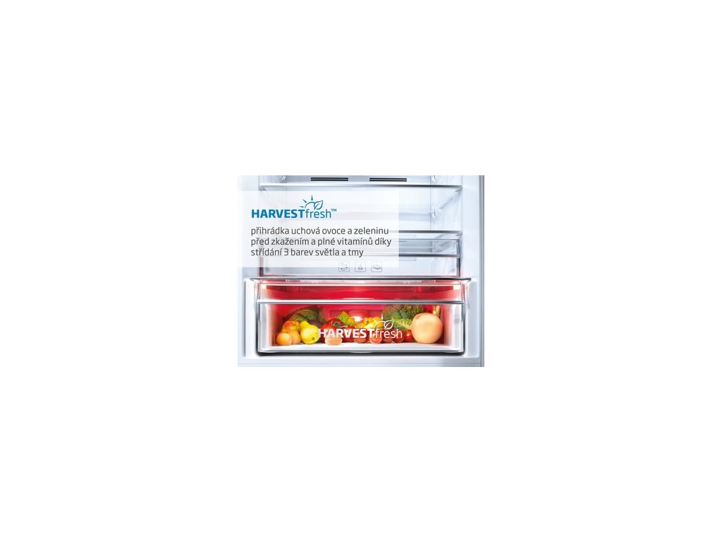 Speciální světelný režim přihrádky HarvestFresh™ kopíruje střídání světla a tmy během celého dne. To udrží v chodu přirozené procesy v ovoci a zelenině, takže se uchová více vitamínů i chuti, než kdyby byly jen zavřené ve tmě. Díky tomu není potřeba každý den nakupovat a zdravá svačinka je stále při ruce.