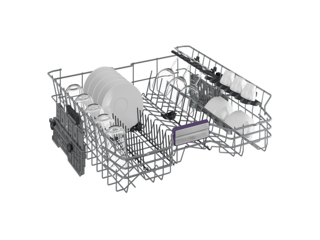 Speciální systém držáku a trysek dokáže spolehlivě umýt často nedostupný vnitřek lahví, vysokých sklenic a termohrnků. Nic není potřeba předmývat, trysky vody navíc se o to postarají.