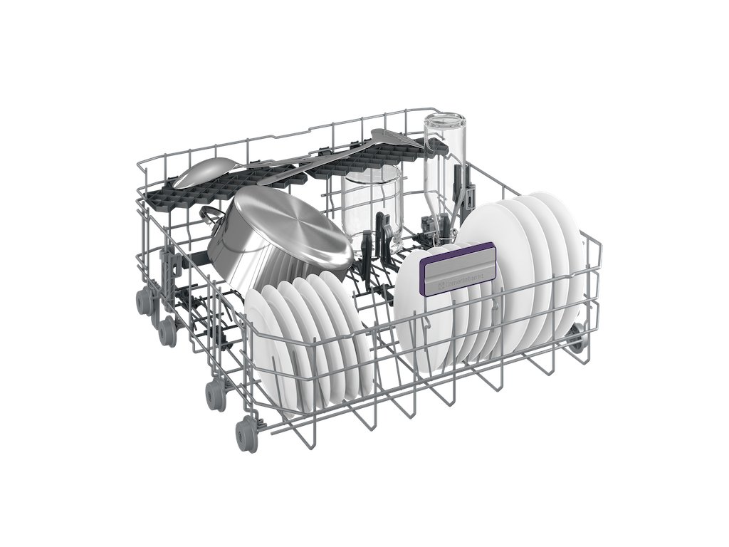 Speciální systém držáku a trysek dokáže spolehlivě umýt často nedostupný vnitřek lahví, vysokých sklenic a termohrnků. Nic není potřeba předmývat, trysky vody navíc se o to postarají.