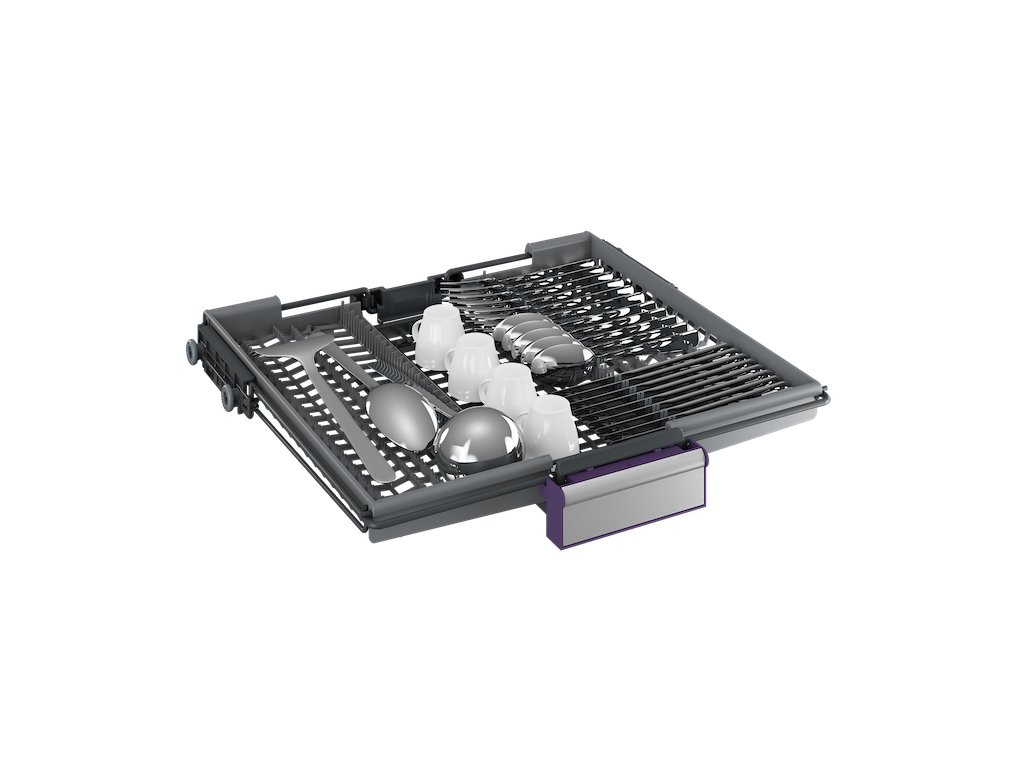 Naše flexibilní příborová přihrádka uvolní místo ve spodním koši, ale také lze nastavit její velikost podle potřeby. Když je příborů a drobného nádobí plno, můžete ji roztáhnout klidně i na celou šířku myčky, a když jsou v horním koši větší kusy nádobí, lze ji zase změnšit. Snadno se tak přizpůsobí dané situaci.