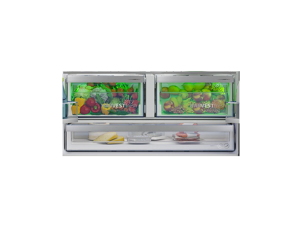 Speciální světelný režim přihrádky HarvestFresh™ kopíruje střídání světla a tmy během celého dne. To udrží v chodu přirozené procesy v ovoci a zelenině, takže se uchová více vitamínů i chuti, než kdyby byly jen zavřené ve tmě. Díky tomu není potřeba každý den nakupovat a zdravá svačinka je stále při ruce.