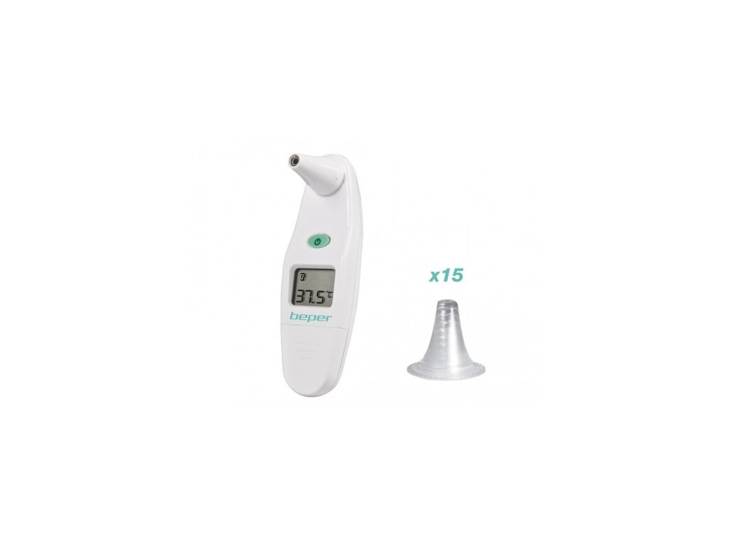 Digitální ušní (tympanický) teploměr BEPER 40102 provádí měření teploty uvnitř zvukovodu pomocí infračervené technologie. Poskytuje velice přesné výsledky ve velmi krátké době. Jedná se o snadno použitelný teploměr, vhodný pro celou rodinu - kojence, děti i dospělé.