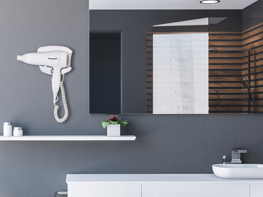- Nástěnný vysoušeč vlasů v elegantním bílém provedení