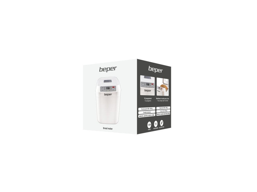 Domácí pekárna BEPER vám pomůže bez problémů připravit dokonalé bochníky načechraného chleba. Ušetřete čas a peníze investováním do pekárny - stojí to za to! Existuje něco voňavnějšího než chléb, který se právě peče? Výroba chleba nemusí být časově náročná ani komplikovaná, naopak tato domácí pekárna je do značné míry odolná proti selhání a vždy vytvoří nadýchaný bochník. Už žádná rozsypaná mouka, moukou zalepené misky, lžíce a další nástroje, už žádné prášení od mouky.