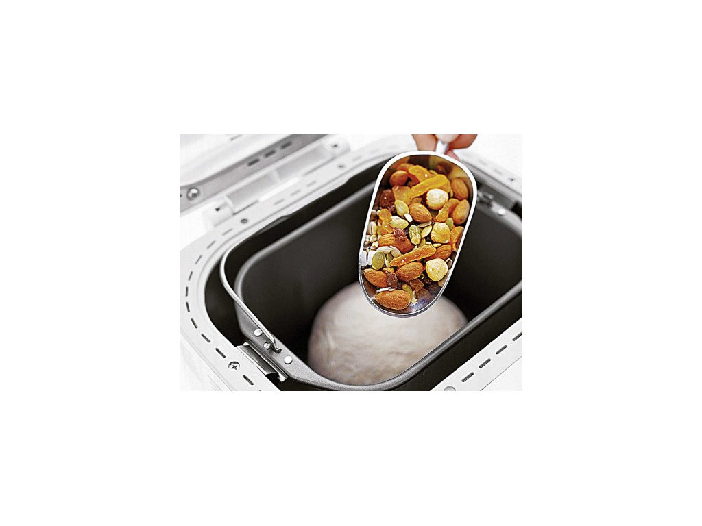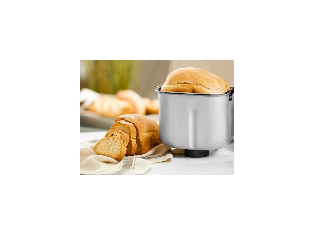 Kompaktní domácí pekárna chleba s nepřilnavou a omyvatelnou pečící formou pro výrobu chleba o hmotnosti 600 až 900 g. Průběh pečení je možné sledovat díky integrovanému průzoru ve víku pekárny.