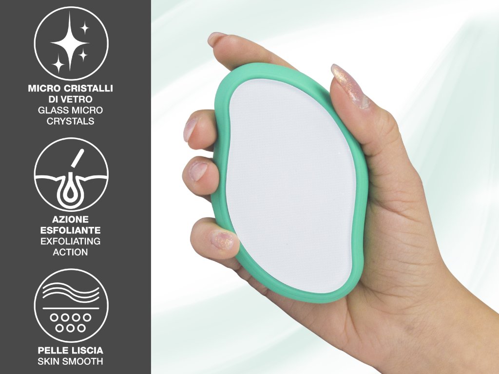 Exfoliační peelingový kámen s depilačním účinkem. Díky působení skleněných mikrokrystalů zanechává pokožku jemnější a hladší. Odstraňuje odumřelé buňky kůže a předchází nepříjemnému zarůstání chloupků. Pomáhá snadno a účinně odstranit stávající chloupky.
