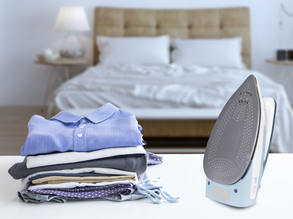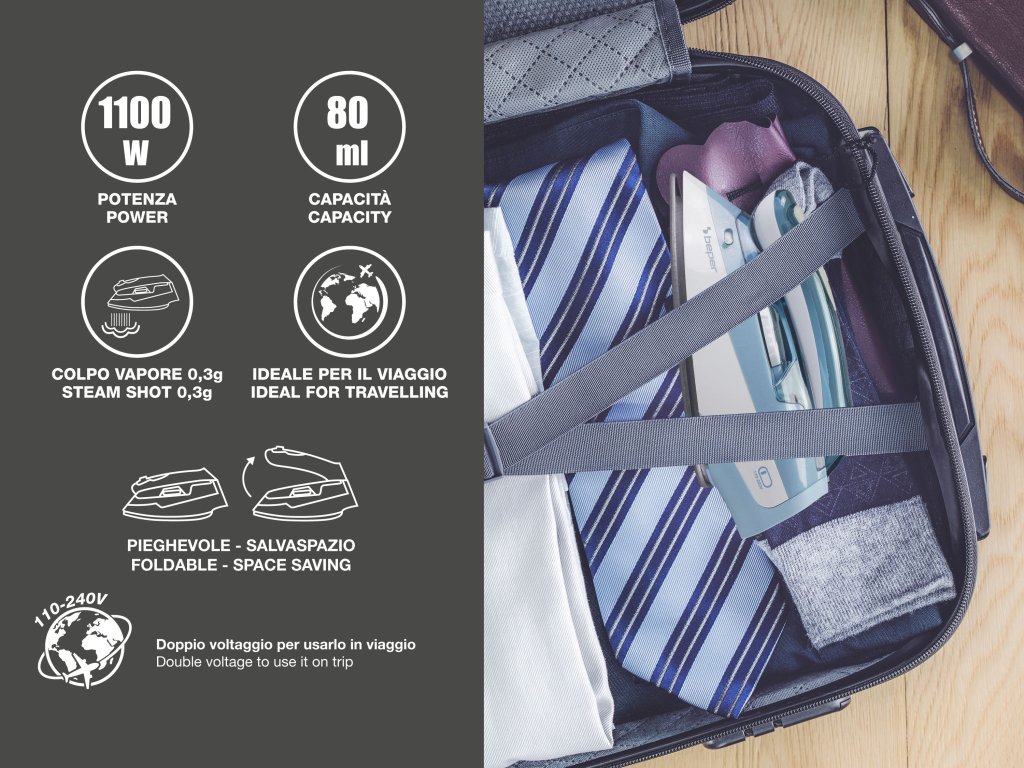 - Cestovní žehlička v elegantním modro-bílém provedení