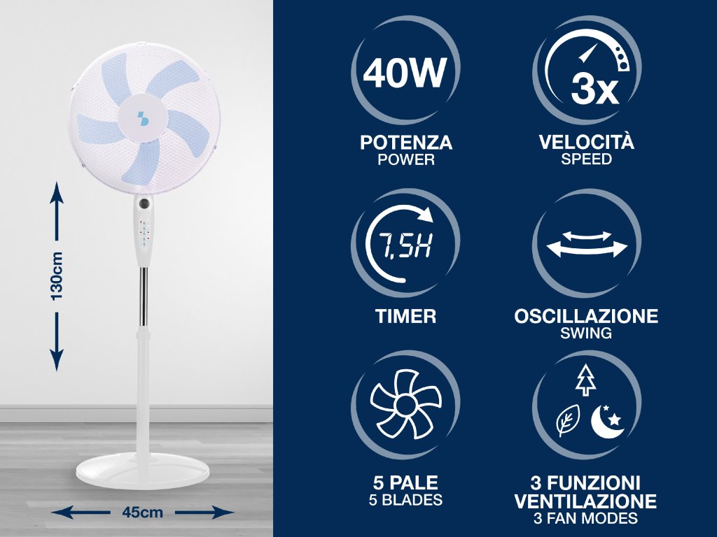Beper P206VEN131 stojanový ventilátor s dálkovým ovládáním 45cm, 40W