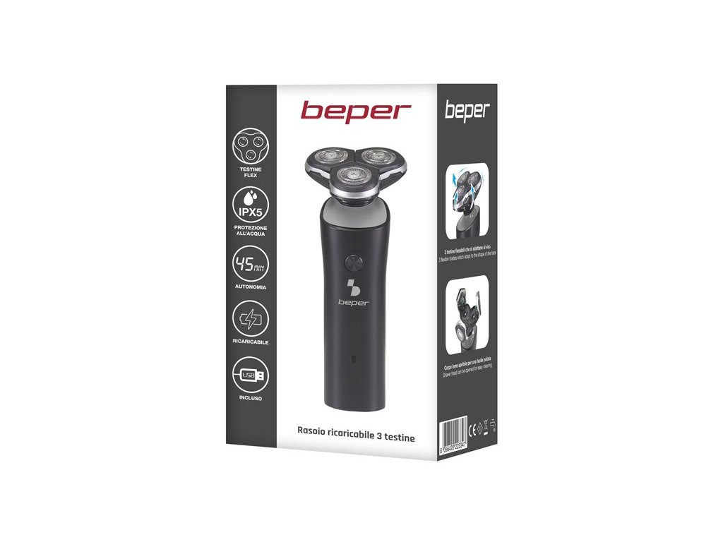 BEPER P304BAR003 nabíjecí holící strojek je vybaven certifikací stupně ochrany proti vodě IPX5, což znamená, že je odolný proti vodě a může být používán i ve vlhkém prostředí. Tento holicí strojek je dodáván s kabelem USB, který zajišťuje snadné a praktické nabíjení pomocí vašeho počítače nebo jiného zařízení s USB portem. Díky snadnému otevírání břitů je čištění velmi jednoduché.