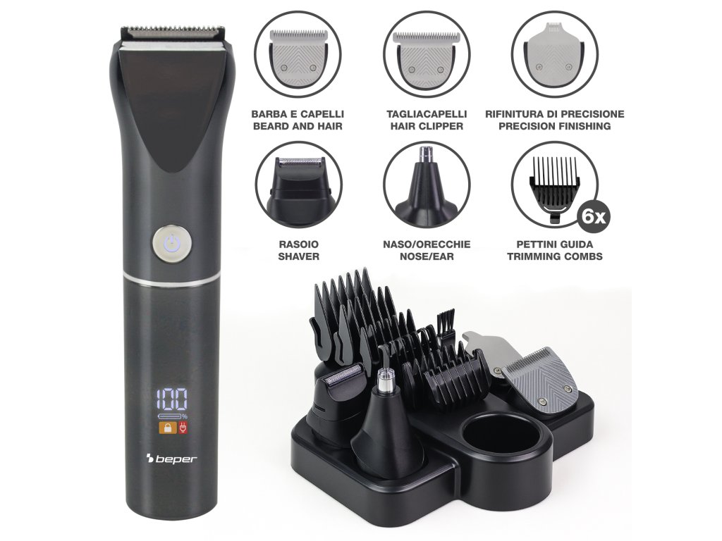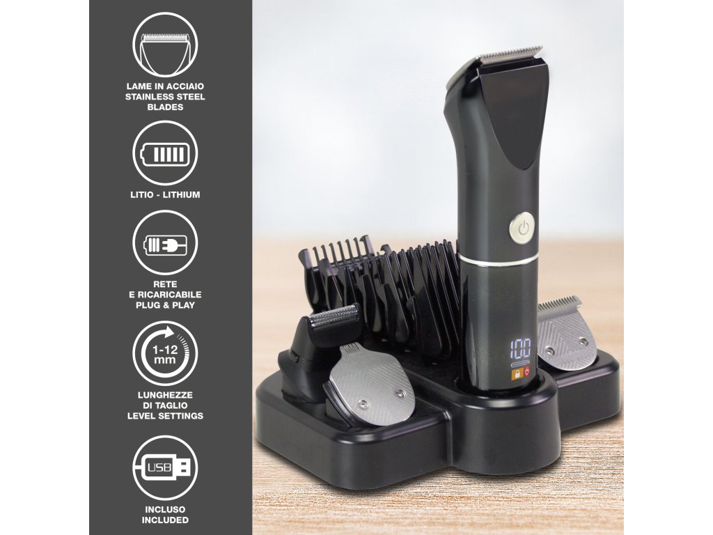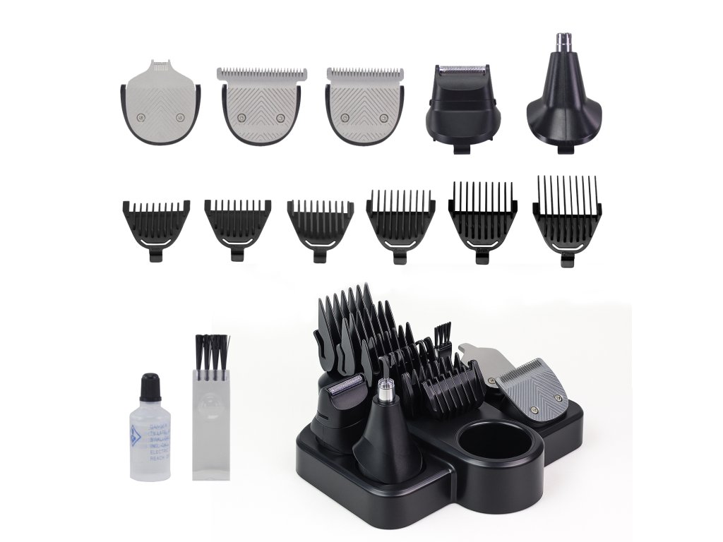 - 12dílný set pro kompletní péči o vzhled: zastřihovač vlasů, zastřihovač vousů, zastřihovač nosních a ušních chloupků, holicí strojek, detailní zastřihovač
