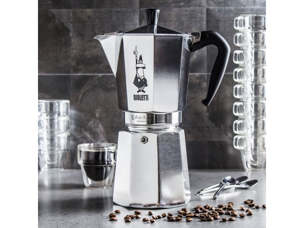 Moka konvička Bialetti Moka Express pro přípravu až 1á šálků kávy. Díky ideálnímu materiálu pro kávovary - hliníku - si již po několika šálcích budete moci vychutnat tu nejlepší chuť Vaší kávy. Kávovar časem získává patinu, která je pro správnou chuť kávy nepostradatelná. Objem 810 ml - na 12 šálků kávy. Poškozený přepravní obal (krabice, polystyren či plastová folie).Jedná se o nový, plně funkční výrobek, na který se vztahuje standardní, minimálně dvouletá, záruka.