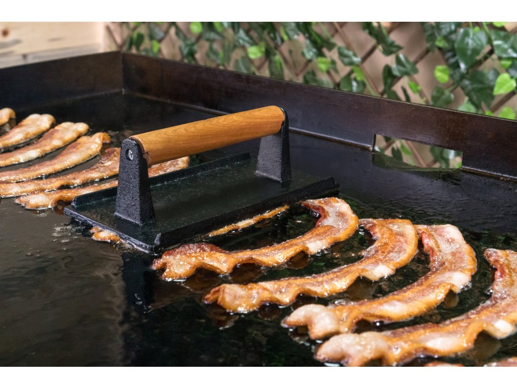- Litinový lis na slaninu (bacon press) – rovnoměrně přitlačí pro dokonalé opečení, pomáhá odstranit přebytečný tuk