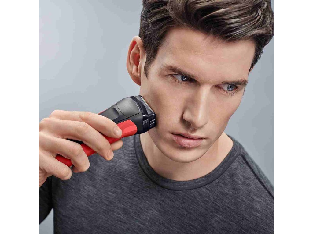 Foil holicí strojek v atraktivním červeném provedení kombinuje efektivní holení s maximálním komfortem pro pokožku. Tři tlakově citlivé břity se přizpůsobí konturám obličeje a zajistí hladké oholení bez podráždění.