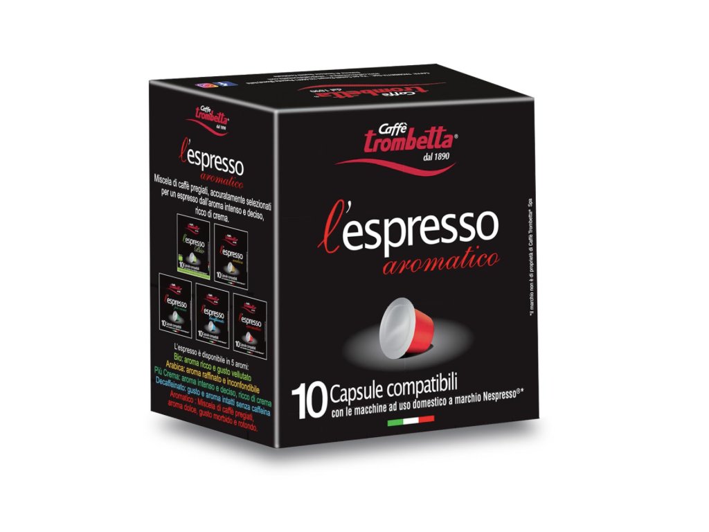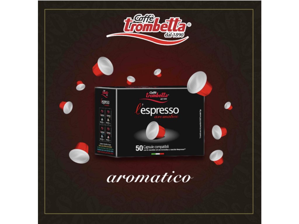 Objevte harmonii chuti a vůně s kapslemi Trombetta Aromatico, kompatibilními se systémem Nespresso®. Tato pečlivě namíchaná směs vybraných zrn Arabica a Robusta přináší vyvážený chuťový profil, jemnou intenzitu a podmanivé aroma, které vás potěší při každém šálku.