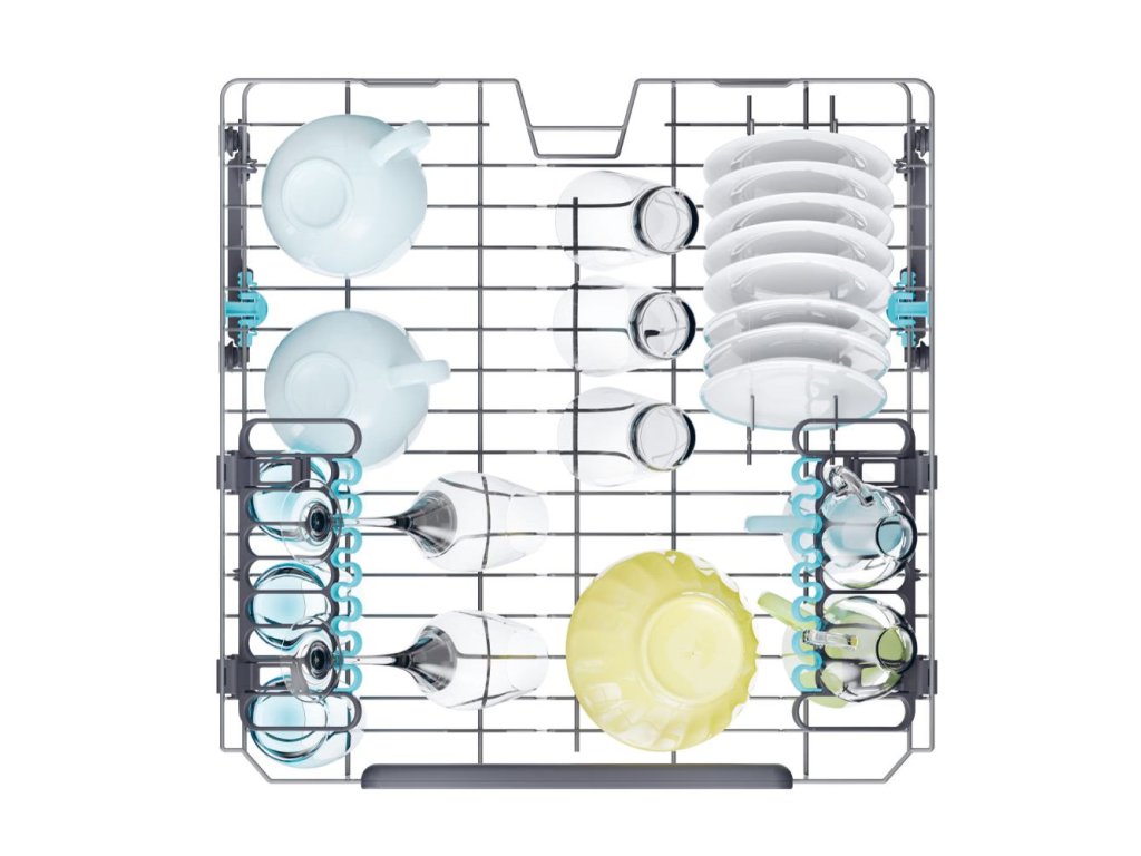 Mycí koše jsou nyní vybaveny novými sklopitelnými držáky, které umožňují vyklopení nahoru nebo sklopení dolů pro získání více místa. Nádobí a dokonce i ty nejtěžší kusy nebylo nikdy tak snadné uložit.