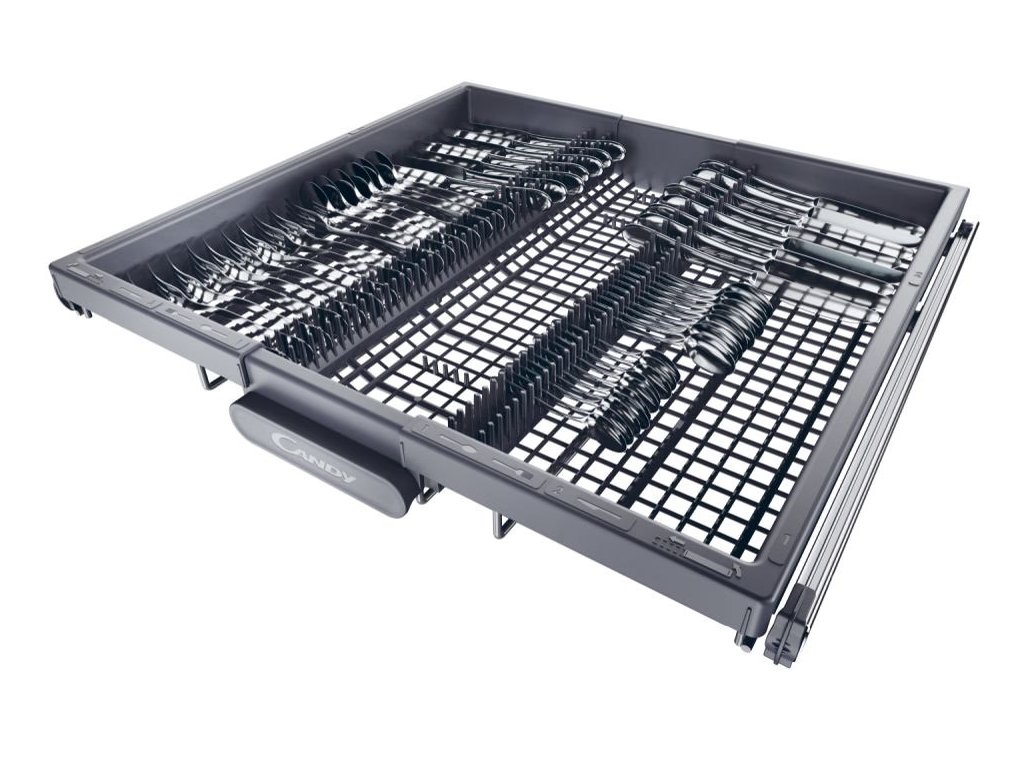 Třetí koš myček Candy Rapido je opatřen chytrou legendou, která jasně ukazuje, kam umístit příbory, abyste dosáhli nejlepších výsledků mytí.