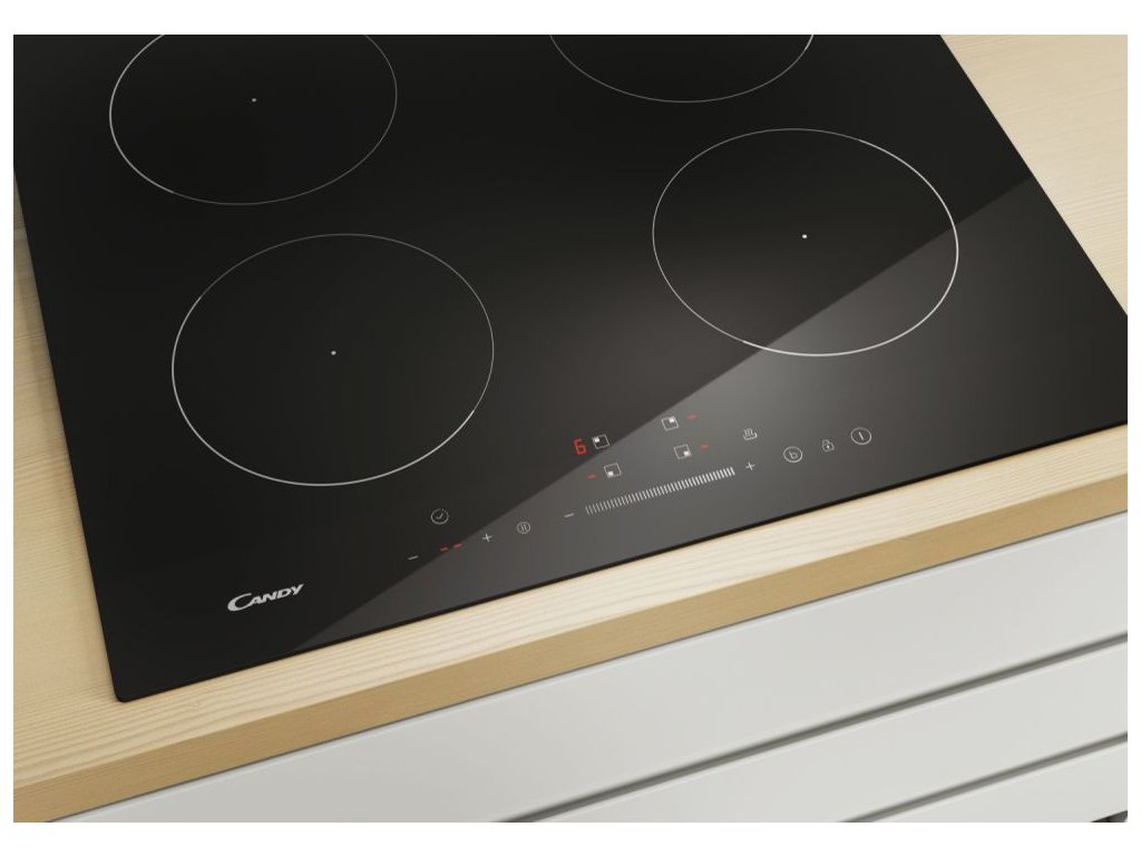 Indukční varná deska Candy CIS642SCTT/4U v černé barvě má 4 varné zóny různého průměru a výkonu. Ovládání je dotykové - slider, umístěné v přední části. Všechny varné zóny disponují ukazatelem zbytkového tepla a boosterem pro všechny zóny. O bezpečnost se postará dětská pojistka, ochrana před přehřátím, zvukový signál při vylití tekutin a bezpečnostní automatické vypnutí v případě dlouhodobé nečinnosti. Poškozený přepravní obal (krabice, polystyren či plastová folie). Jedná se o nový, plně funkční výrobek, na který se vztahuje standardní, minimálně dvouletá, záruka.