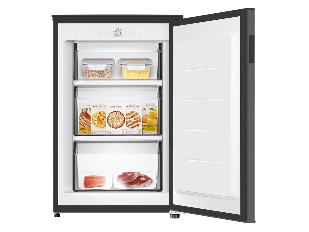 Mrazák CUQS 58ES se pyšní třemi průhlednými zásuvkami, které zajišťují přehledné uspořádání potravin a snadný přístup. I přes svou kompaktní velikost nabízí dostatečný čistý objem 85 litrů, což je ideální pro malé domácnosti, chaty či kanceláře. S možností manuálního odmrazování a vysokým mrazicím výkonem až 4,4 kg/24 hod je tento mrazák skvělým pomocníkem pro dlouhodobé uchovávání potravin.
