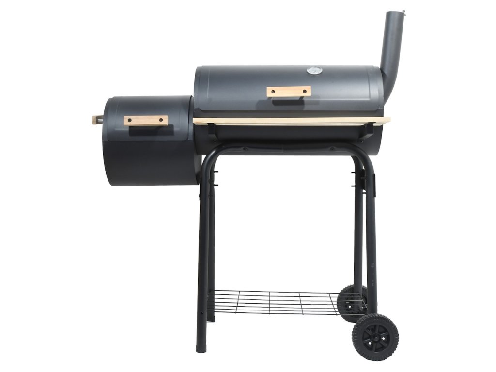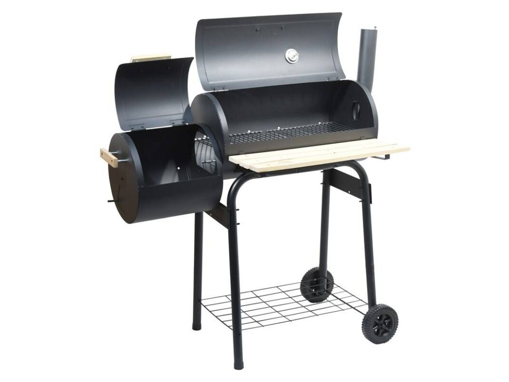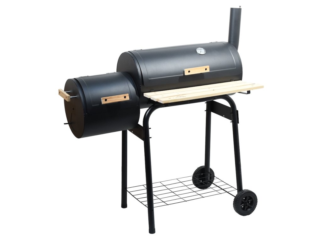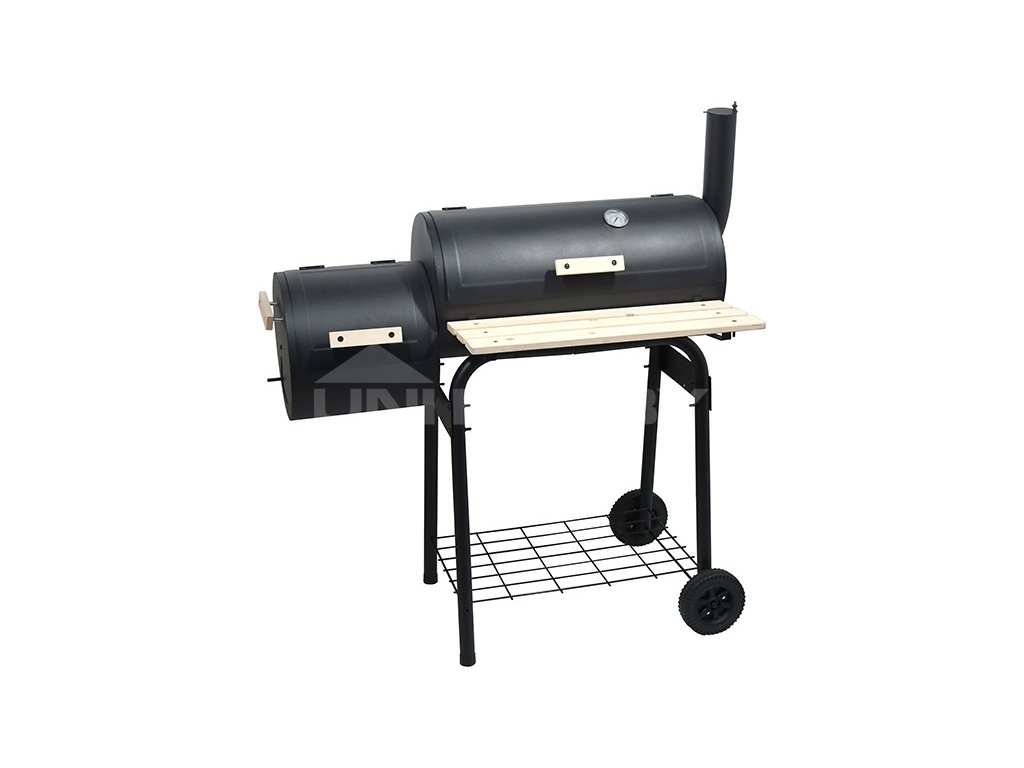 - Zahradní gril s udírnou, na dřevěné uhlí s konstrukcí typu lokomotiva.