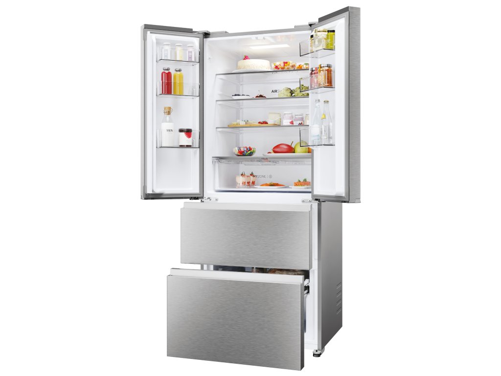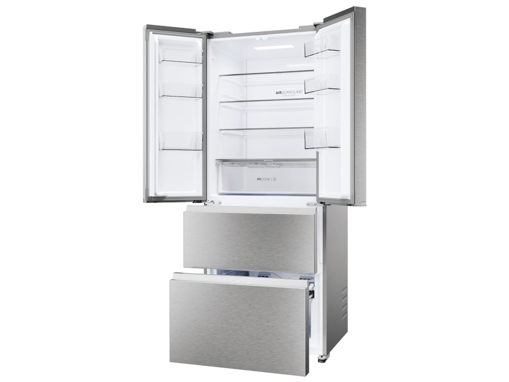 Designově se lednice vyznačuje francouzskými dvířky (French Door), čitelným digitálním displejem umístěným na dveřích a LED osvětlením vnitřního prostoru.