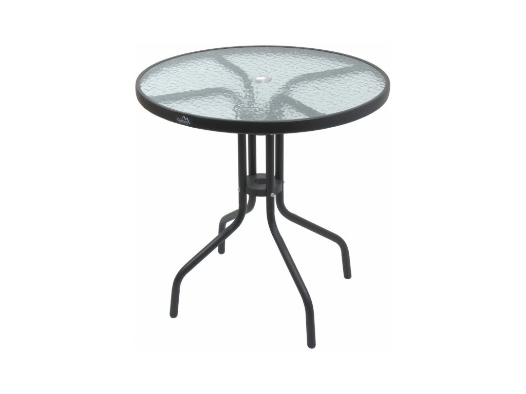Zahradní stůl Compass TERST o průměru 70cm s deskou z tvrzeného skla opatřenou otvorem na slunečník. Stůl je opatřen čtyřmi nohami. Výška stolu je 72 cm. Poškozený přepravní obal (krabice, polystyren či plastová folie).Jedná se o nový, plně funkční výrobek, na který se vztahuje standardní, minimálně dvouletá, záruka.