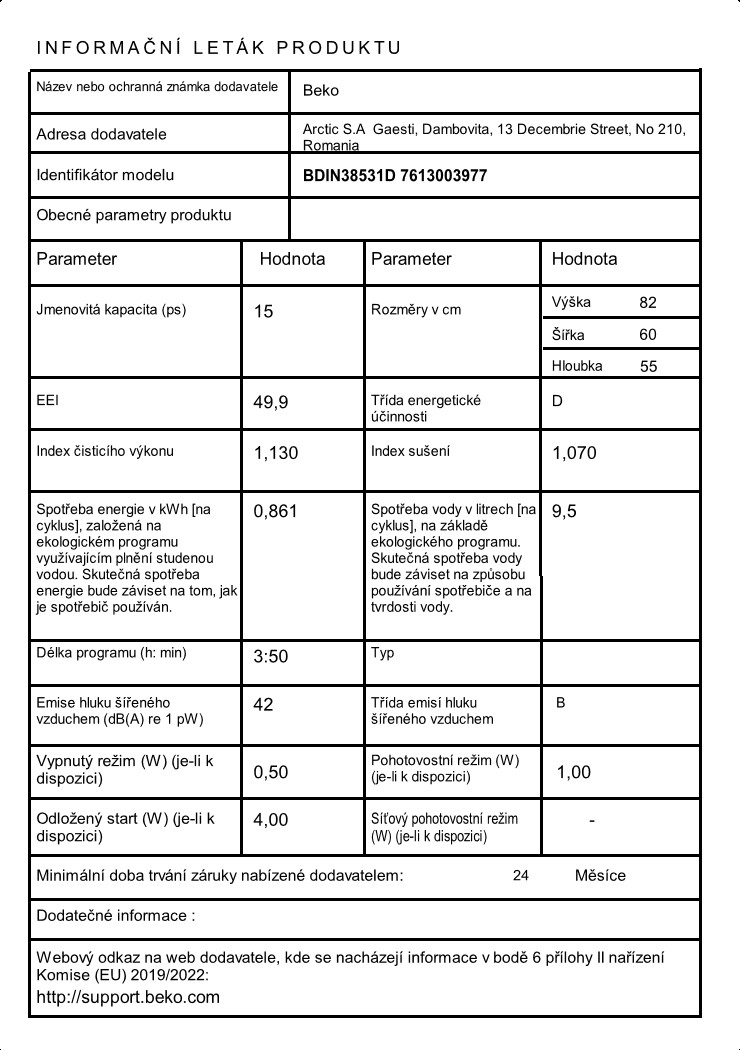 Vestavná myčka Beko BDIN 38531 D poškozený výrobek