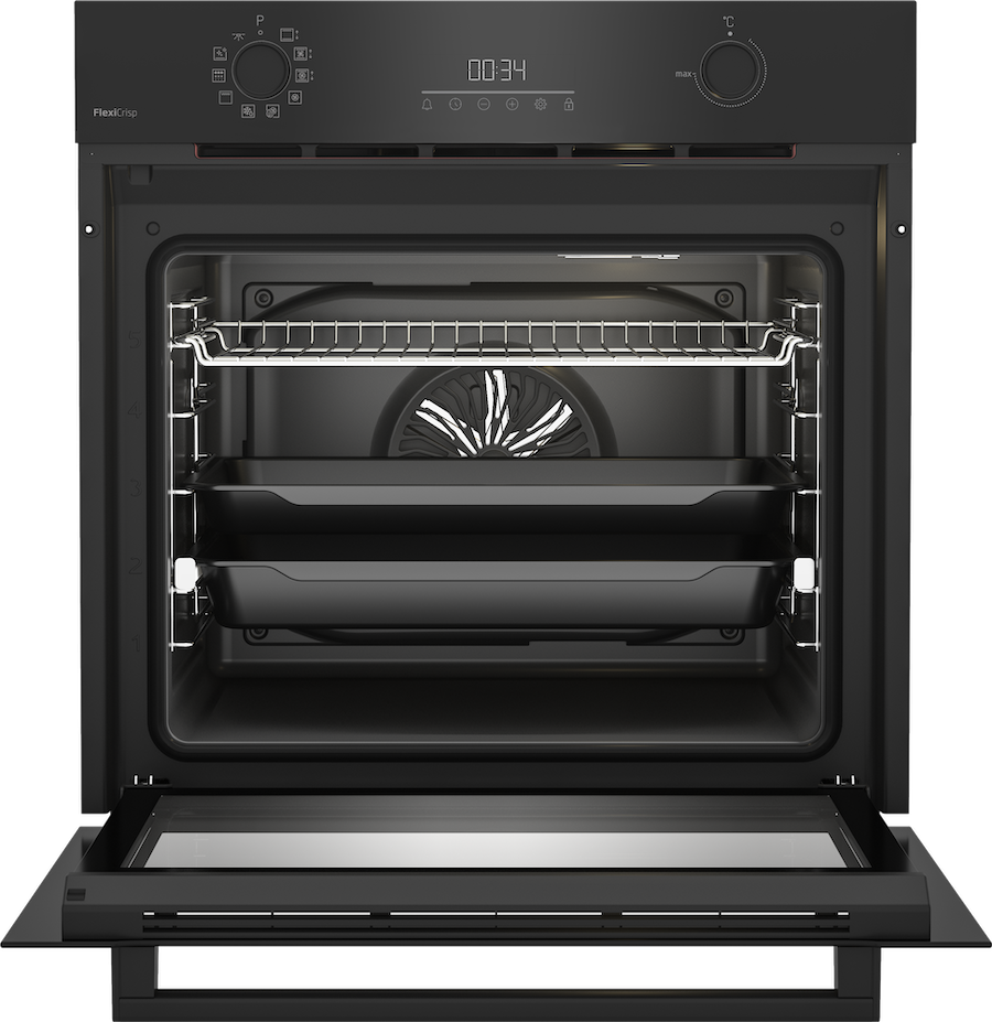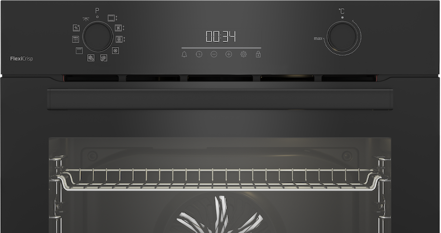 Vestavná multifunkční trouba Beko Beyond BBIM 17300 BMPSF s funkcí FlexiCrisp, která Funkce FlexiCrisp zajistí křupavou kůrčičku a správné propečení povrchu jídla, technologií AeroPerfect a pyrolytickým čištěním.