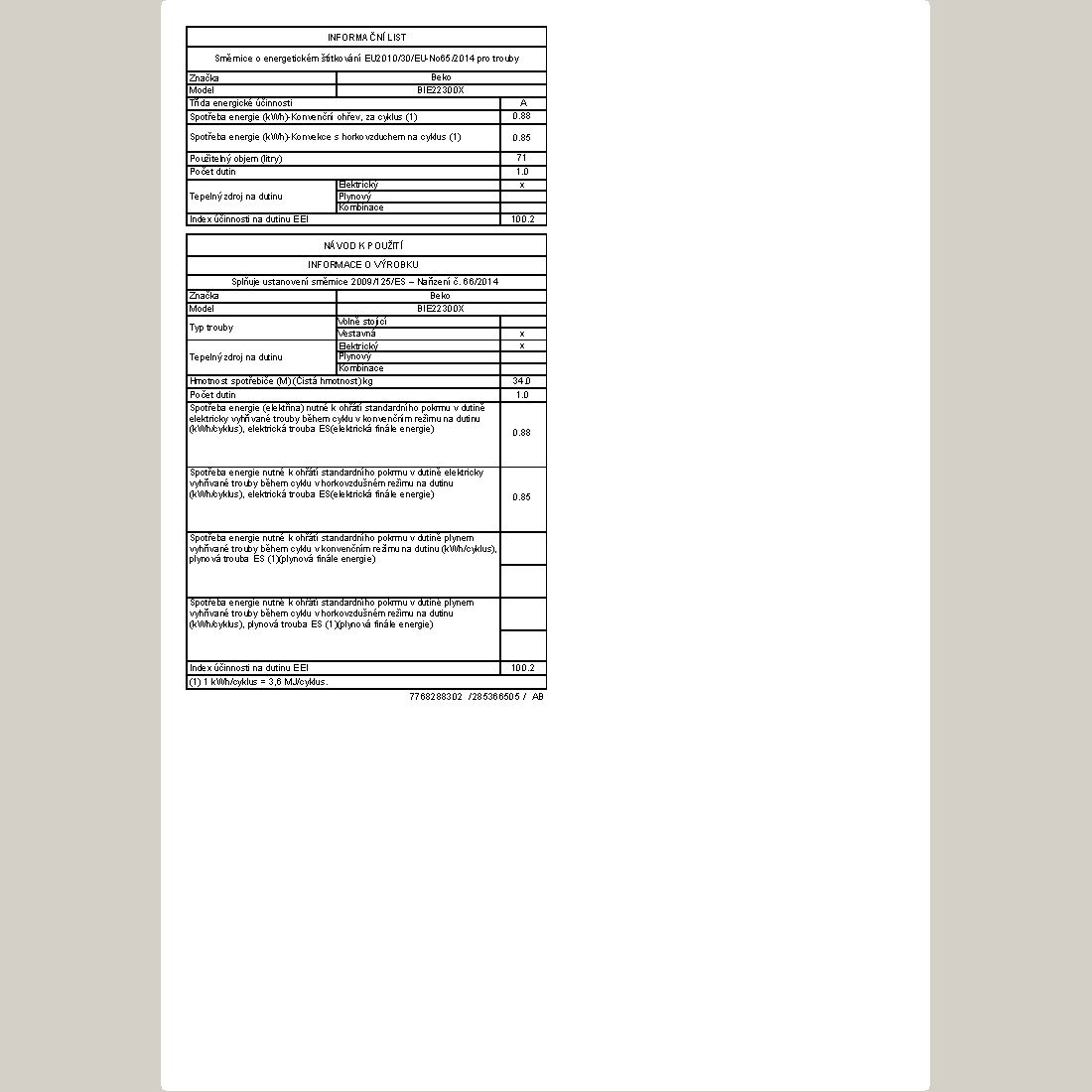 Objem trouby | 71 l |