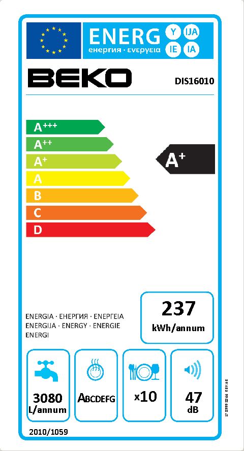Vestavná myčka na nádobí Beko DIS 16010 vhodná díky svým rozměrům do menších prostor. Disponuje LED signalizací, kterou promítá na podlahu. Díky programu Poloviční náplň nemusíte čekat, až se myčka zcela naplní, zapnete ji v době potřeby a myčka přizpůsobí přítok vody množství nádobí uvnitř. Program Quick and Clean umyje plnou náplň myčky za neuvěřitelných 58 minut a to vše s výsledkem AAA! Ochrana WaterSafe+ je systém ochrany, který zastaví přívod vody do myčky, pokud začne téct. Umí zastavit i přívod vody z kohoutku do přívodní hadice, pokud by praskla.