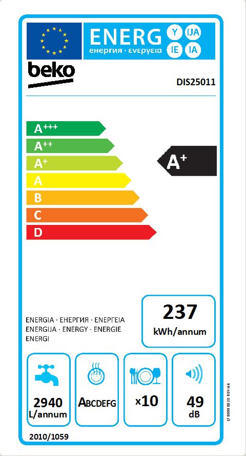 Plně integrovaná vestavná myčka nádobí Beko DIS 25011 v energetické třídě A+. Naplníte ji až 10 sadami nádobí. LED signalizace provozu na podlahu je vychytanou pomůckou. Na výběr Vám nabídne z 5 programů mytí: Mini 30, Eco 50, Quick and Dry, Intensive 70, Daily 65.