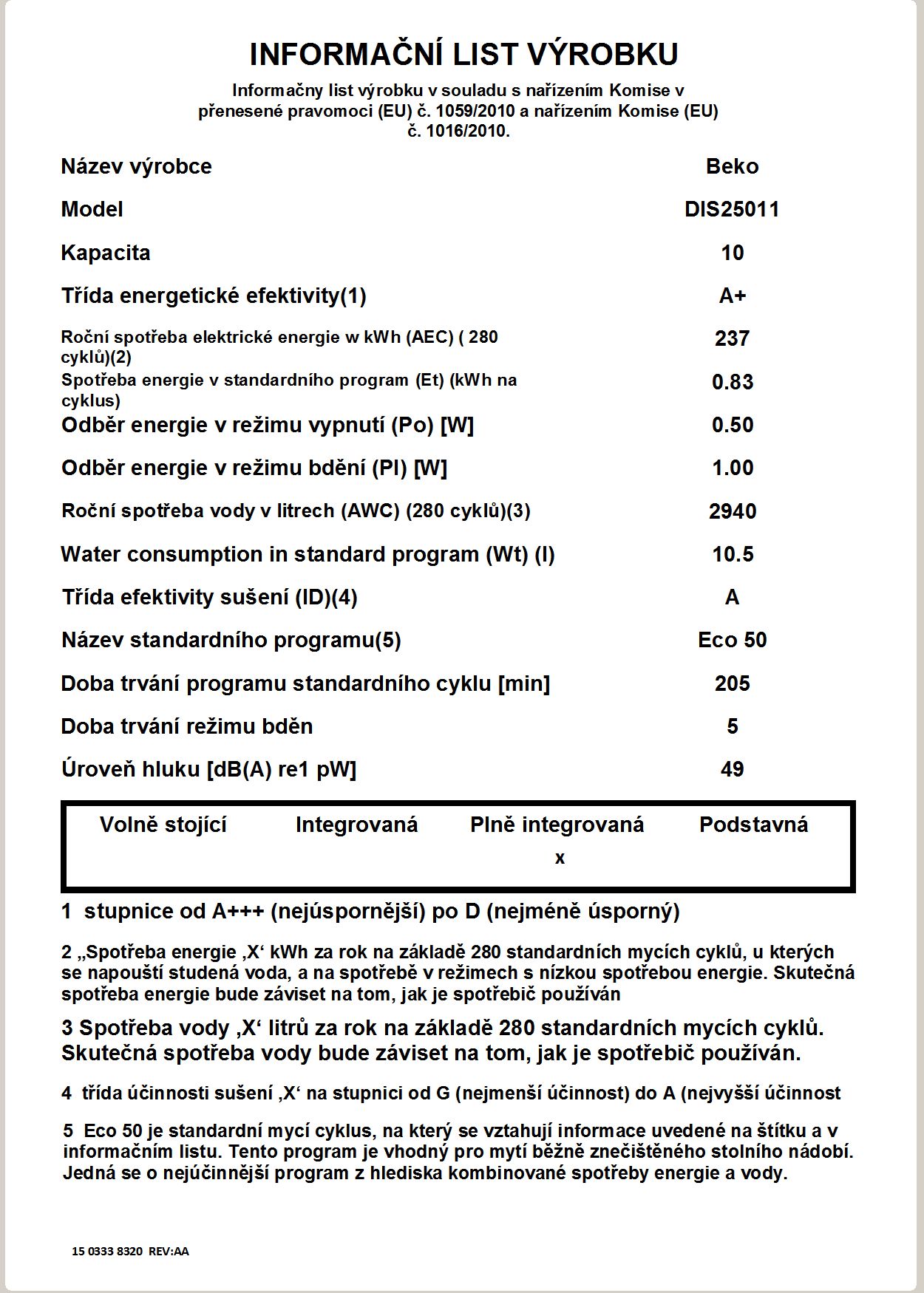 Roční spotřeba elektrické energie | 237 kWh/rok |