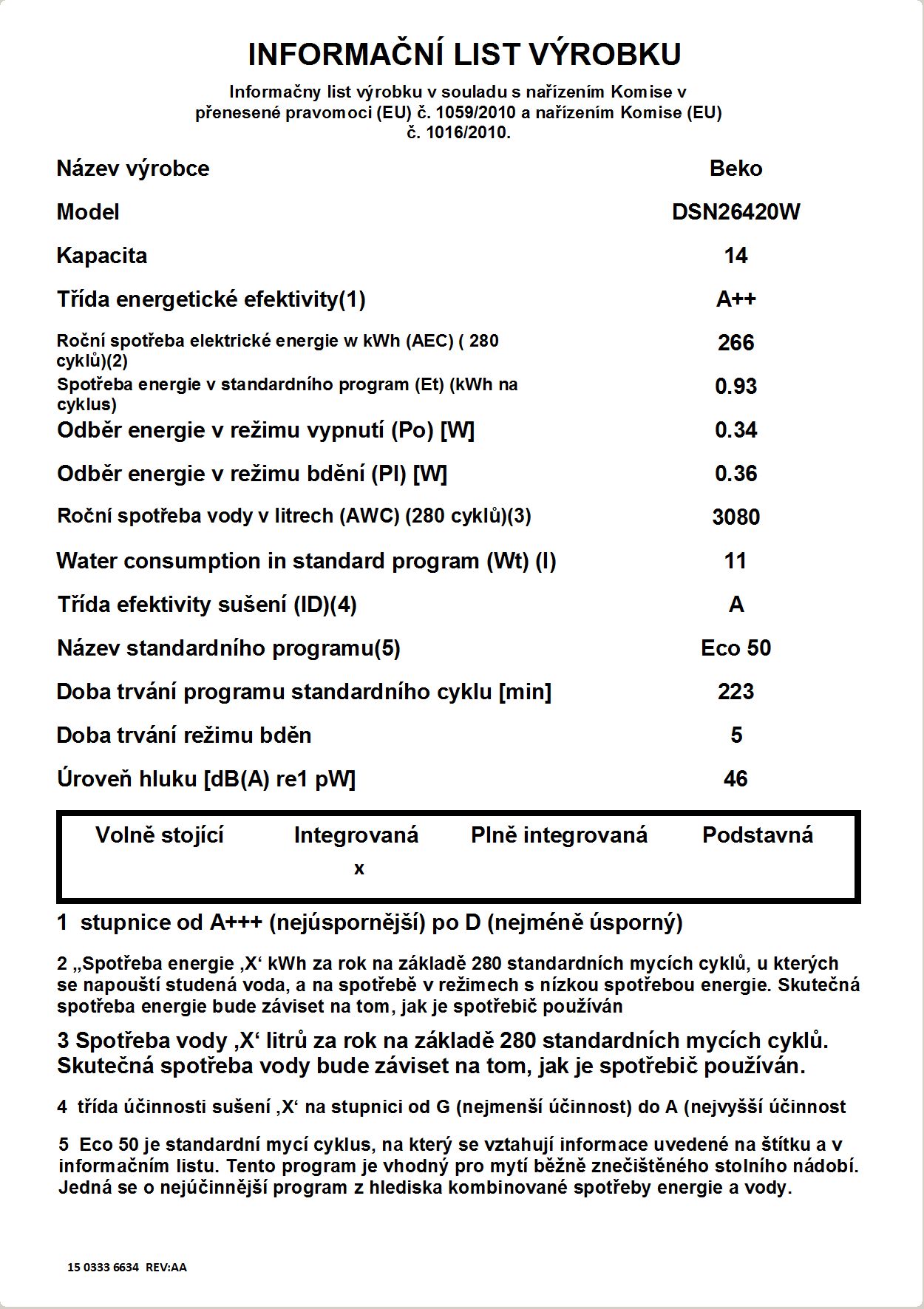 Funkce | Odložený start, Poloviční náplň, Fast+, Super oplach, Turbo mytí |