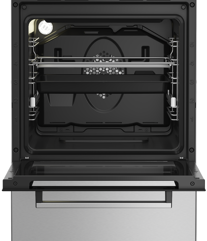 Multifunkční sporák Beko FSM52321DXDT s plynovou deskou v nerezovém provedení je efektivním a moderním řešením pro vaši kuchyni. S objemem trouby 55 litrů a energetickou třídou A nabízí dostatek prostoru pro pečení a úsporný provoz. Díky parnímu čištění SteamShine je údržba trouby snadná a rychlá, jelikož pára pomáhá uvolnit připálené nečistoty. Technologie 3D pečení zajišťuje rovnoměrné propečení pokrmů díky distribuci tepla z více stran, což vede ke křupavé kůrce a šťavnatému středu. Vysoká účinnost hořáků pak šetří až 25 % energie a zkracuje čas vaření. Pro komfortní a bezpečnou manipulaci je sporák vybaven teleskopickým výsuvem, který usnadňuje vyjmutí rozpáleného plechu.