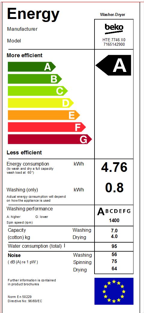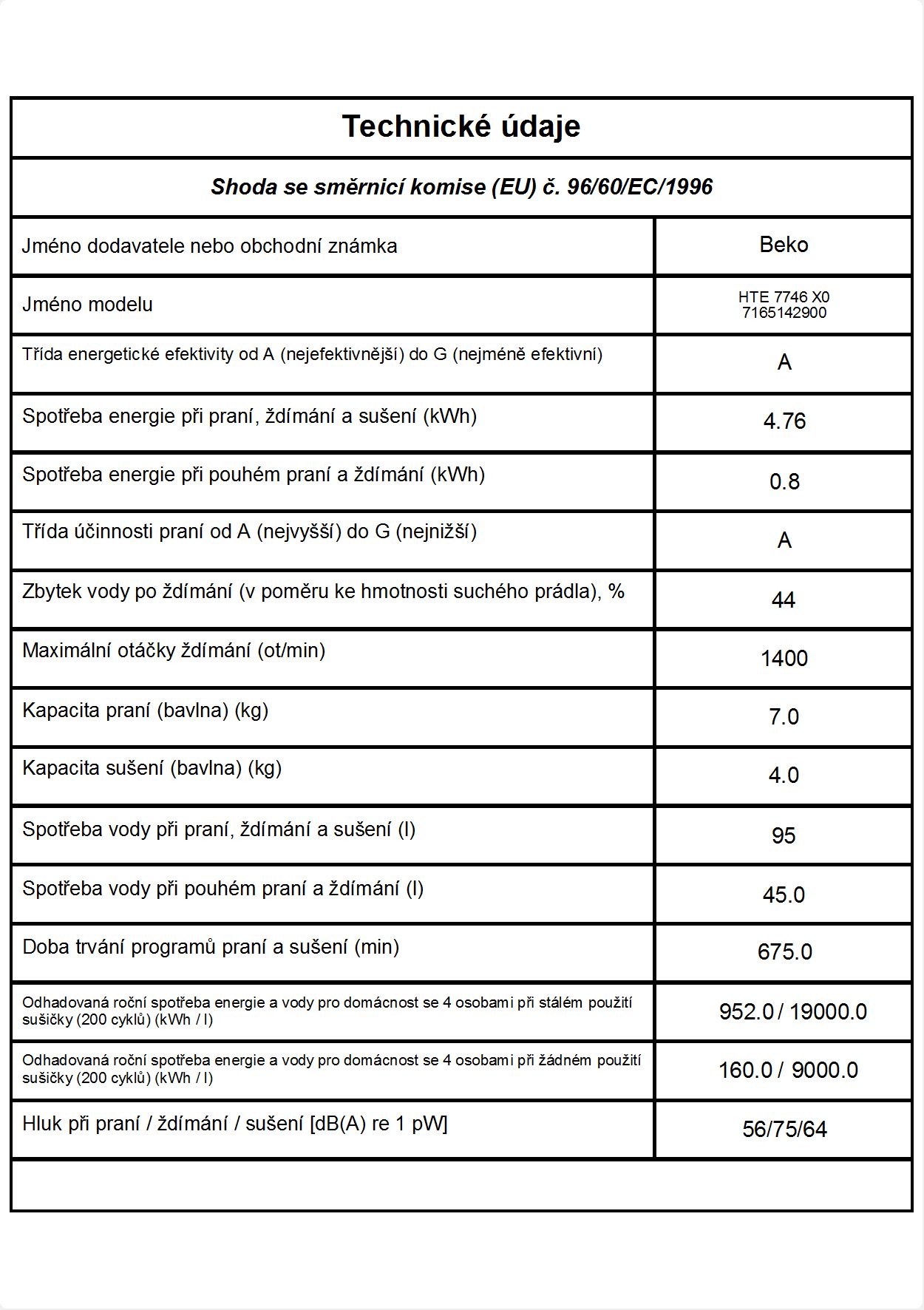 Automatická pračka se sušičkou Beko HTE 7746 X0 s kapacitou až 7kg na praní a 4 kg na sušení. Energetická třída A a 14 programů. AddGarment pro přidání zapomenutého prádla nebo odložený start. Klapka na tekutý prací prostředek nebo dále nabízí dětskou pojistku proti nechtěnému otevření v průběhu programu.