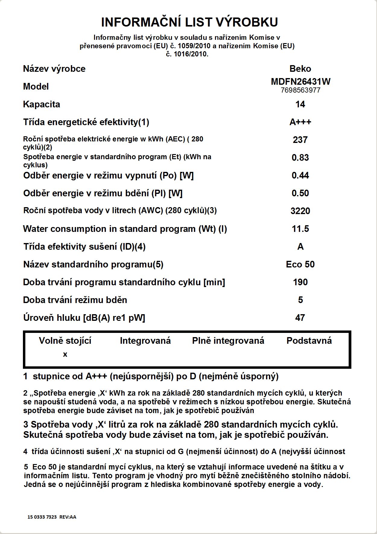 Roční spotřeba elektrické energie | 237 kWh/rok |