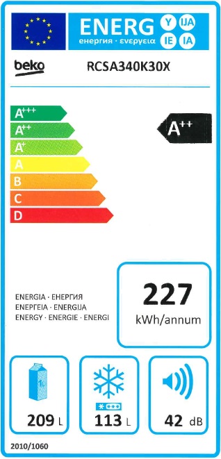 Kombinovaná chladnička Beko RCSA 340 K30X v úsporné energetické třídě A++. Nechybí LED vnitřní osvětlení. Lednice je vybavena skleněnými policemi s kovovými okraji.