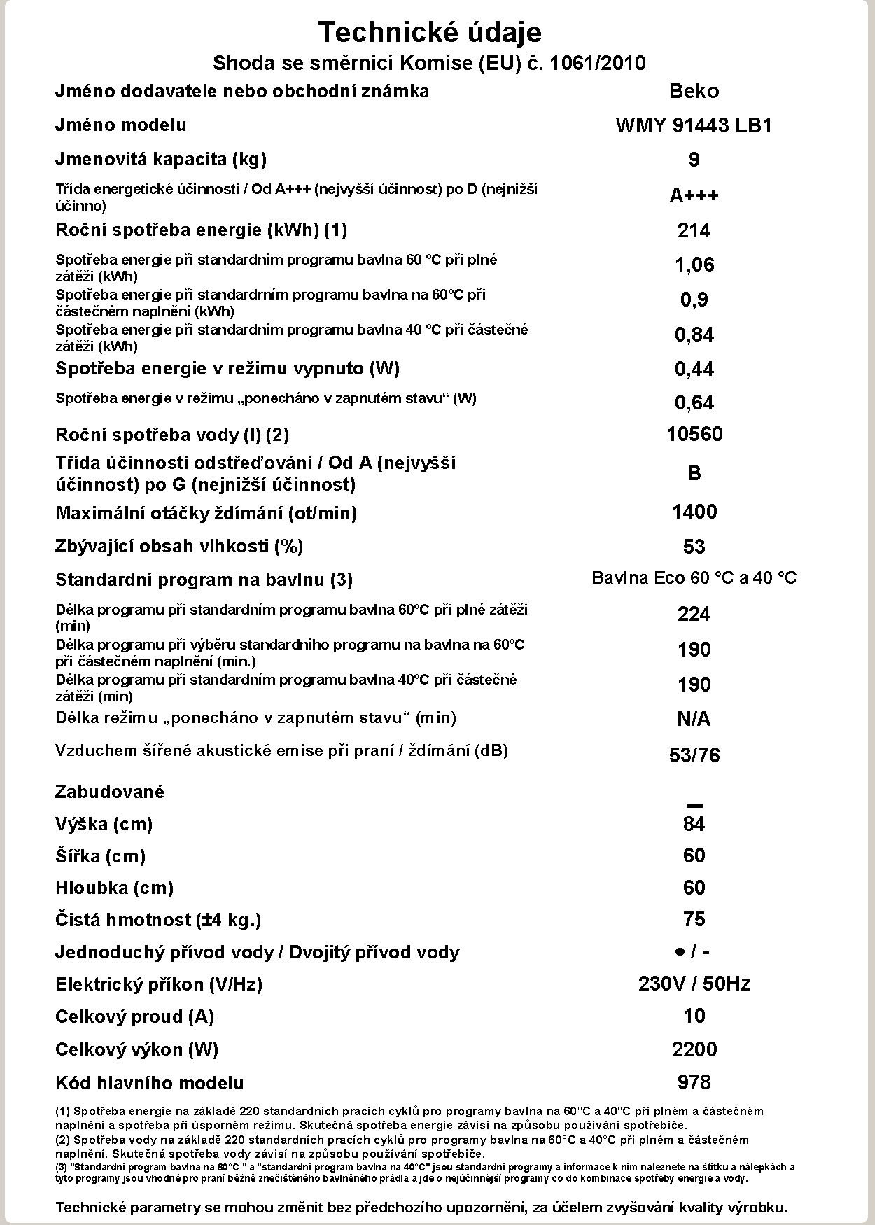 Roční spotřeba elektrické energie | 214 kWh/rok |