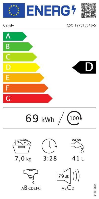 Předem plněná pračka Candy CSO 1275TBE/1-S v energetické třídě D pro 7 kg prádla s 16 základními programy + 40 programů Smart Touch, otočným voličem a digitálním displejem v češtině, ,možnosti propojení s mobilním telefonem, Active Motion systémem, bubnem Shiatsu, bezpečnostním zámkem dveří, ochranou proti úniku vody Antiowerflow a ochranou proti přepěnění.