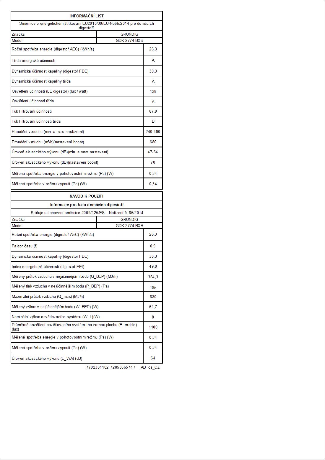 Roční spotřeba elektrické energie | 26,3 kWh/rok |
