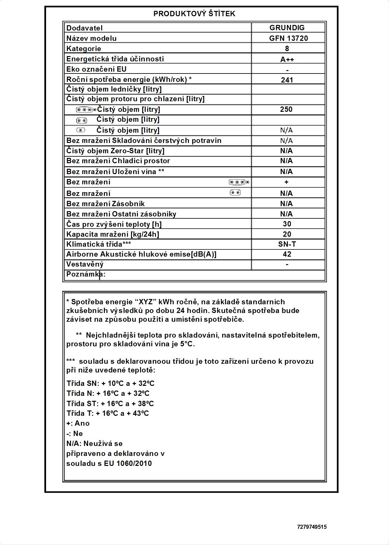 Volně stojící šuplíková mraznička Grundig GFN 13720