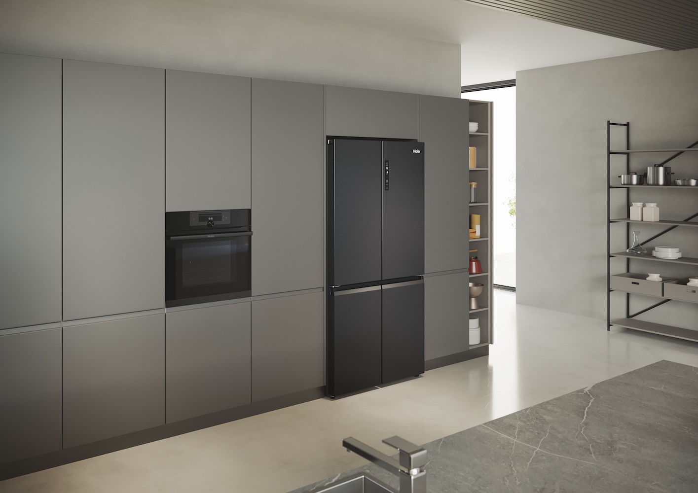 O delší čerstvost ovoce a zeleniny se stará zásuvka Humidity Zone, která udržuje optimální vlhkost. Technologie Haier Air Surround rozvádí chladný vzduch rovnoměrně po celém prostoru a brání vysušování potravin, zatímco antibakteriální systém T-ABT® pomáhá udržet hygienické prostředí uvnitř spotřebiče. Čtyřdveřové uspořádání spolu s promyšlenými policemi a zásuvkami zajišťuje pohodlné uložení a přehlednost každého nákupu.