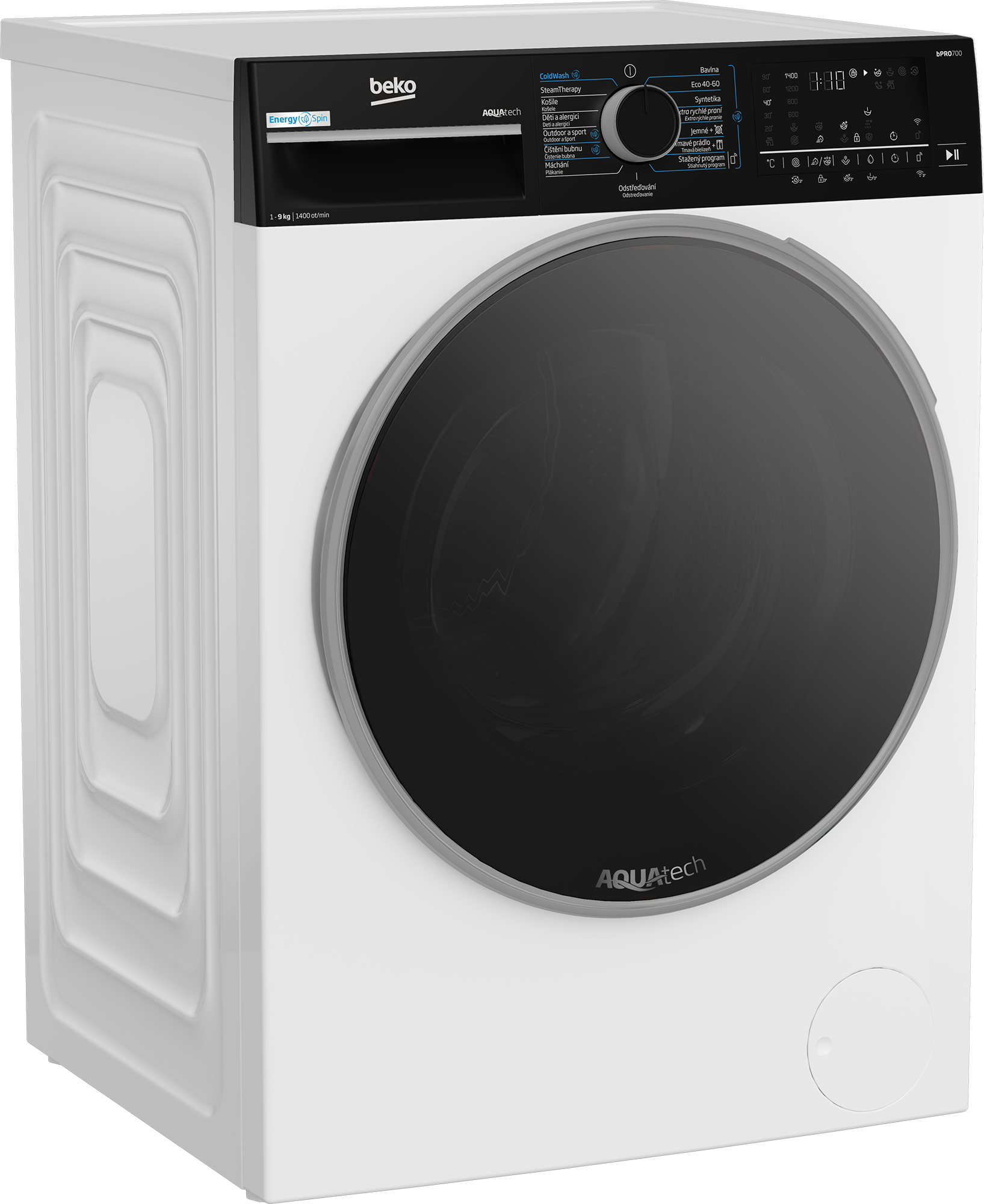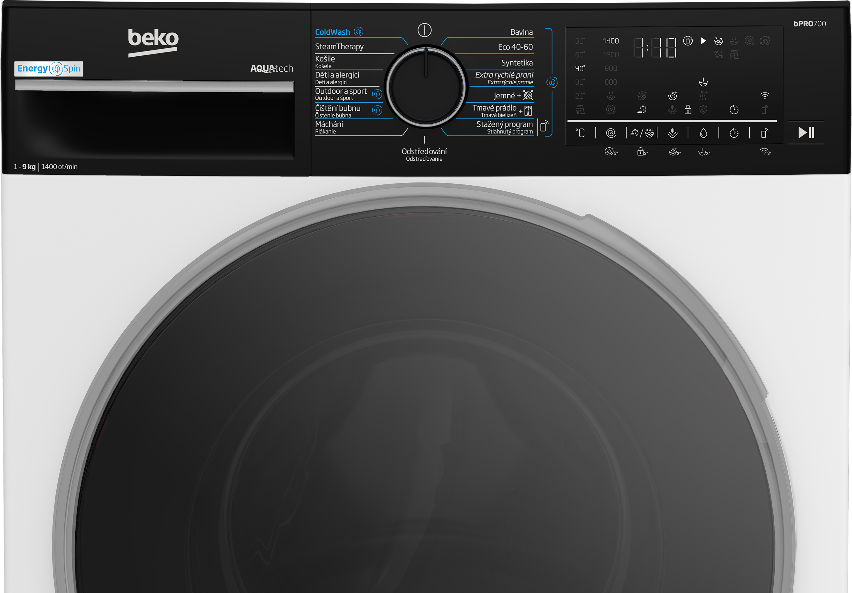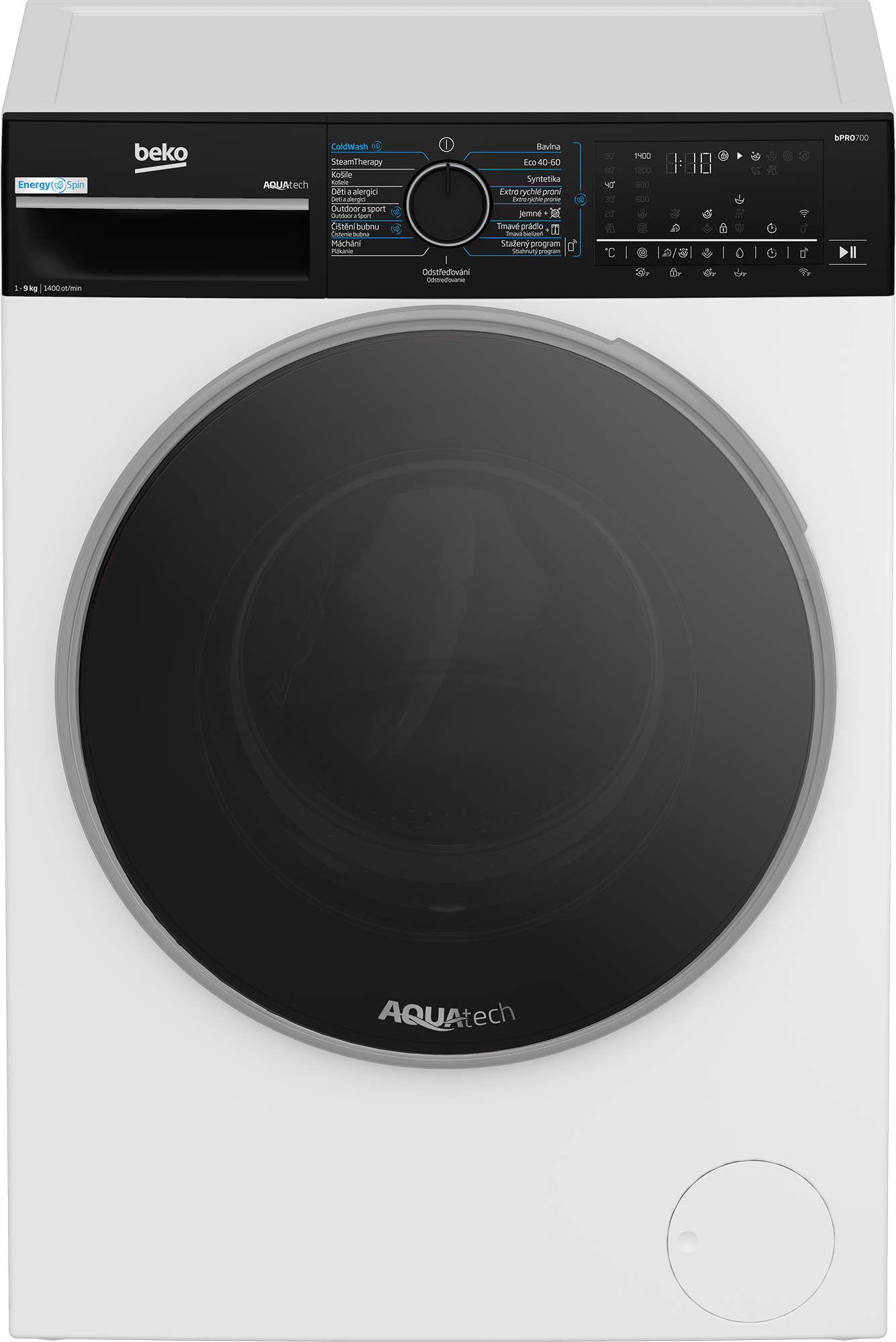 Předem plněná pračka s kapacitou 9 kg a max. otáčkami 1 400 ot./min. Vybavena technologiemi pro úsporné a efektivní praní díky inovacím od Beko.