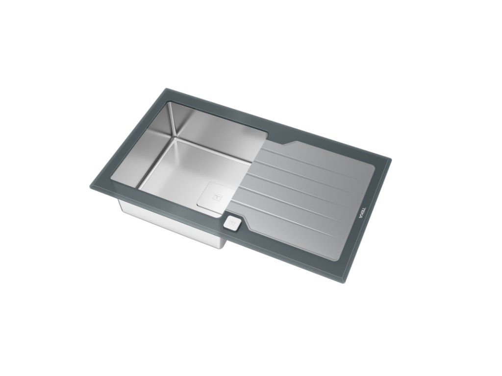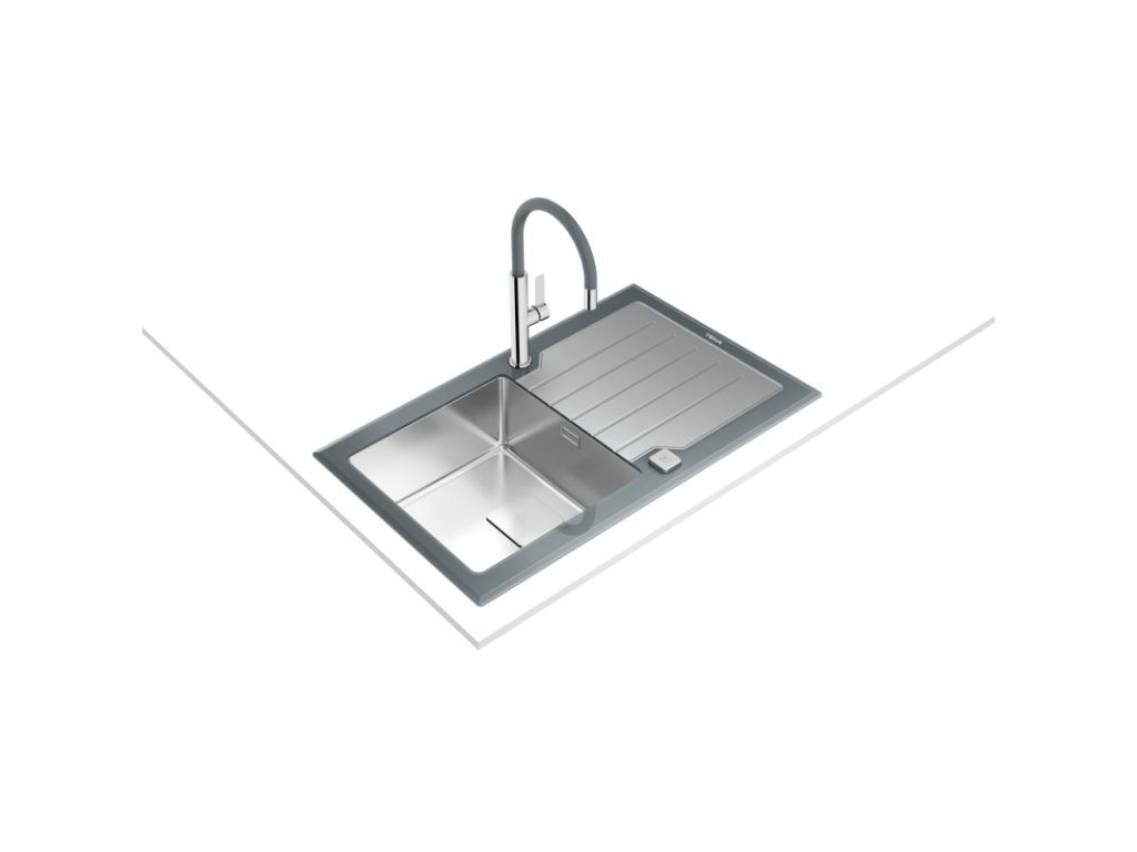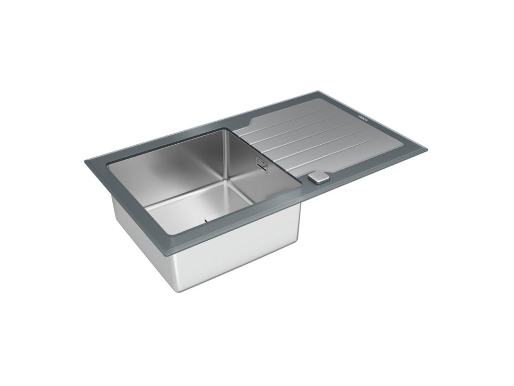 Skleněný dřez s nerezovou vanou, oboustranný