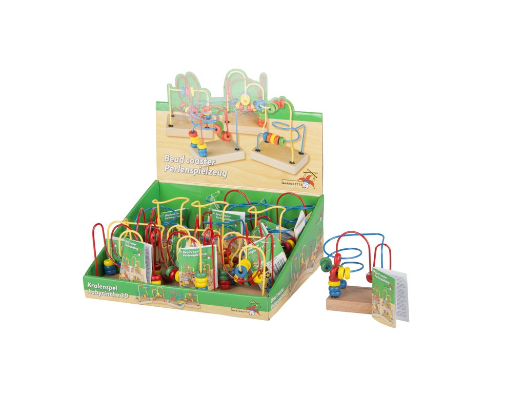 Tento klasický labyrint s dřevěnými korálky naučí děti jemnou motoriku, logické uvažování a přemýšlení nad tím, jak věci fungují. V labyrintu jsou dvě spirály, které se vzájemně proplétají a děti tak mohou zkoumat, jak dostat korálky z jedné strany hrazdy na druhou. Vhodné od 1 roku.