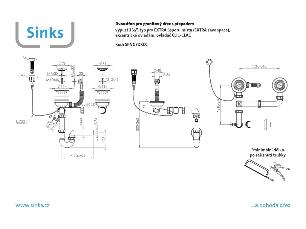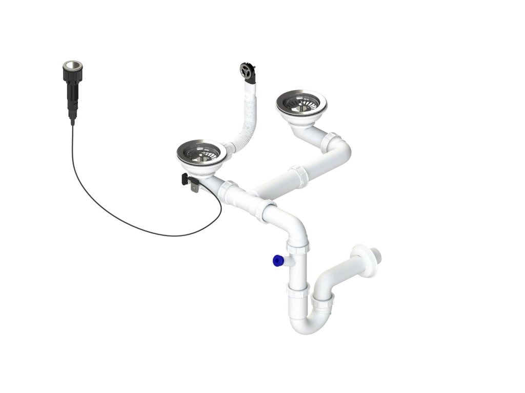 Dvousifon 3 1" pro granit. dřezy s extra úsporou místa a s exc. ovladačem (clic-clac)
