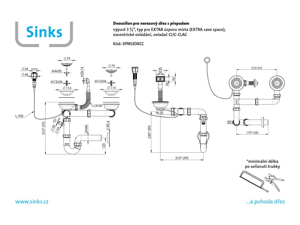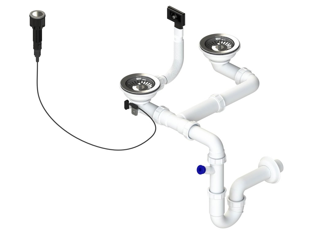 Dvousifon 3 1" pro nerez. dřezy s extra úsporou místa a s exc. ovladačem (clic-clac)