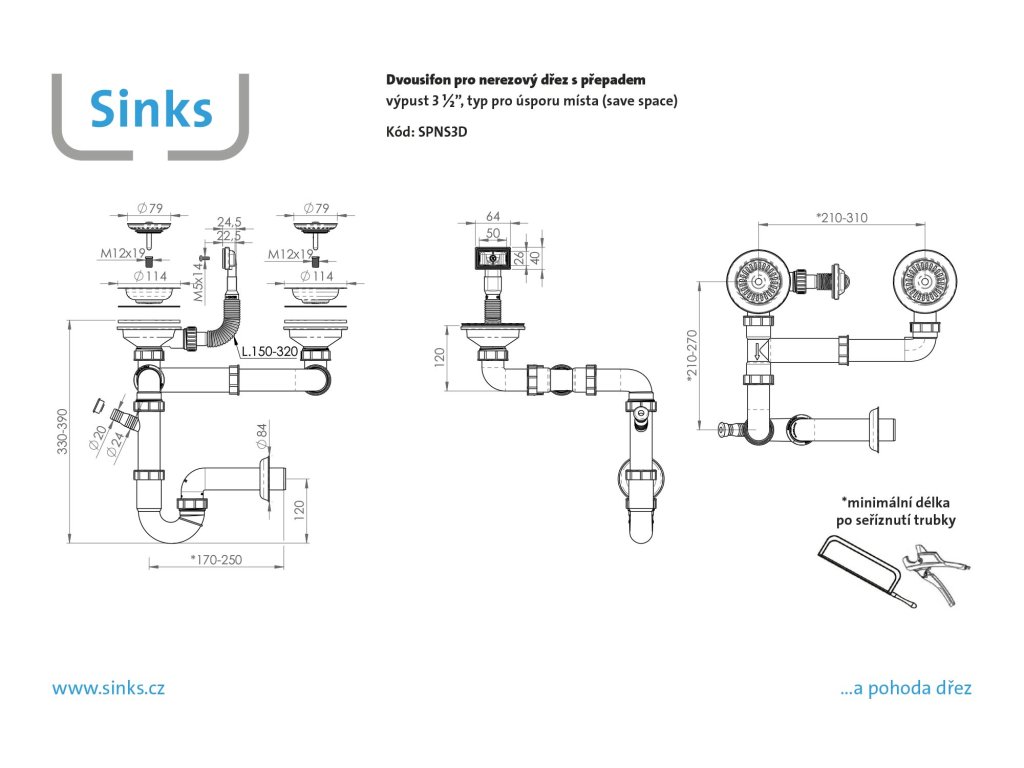 Dvousifon 3 1" pro nerez. dřezy s úsporou místa