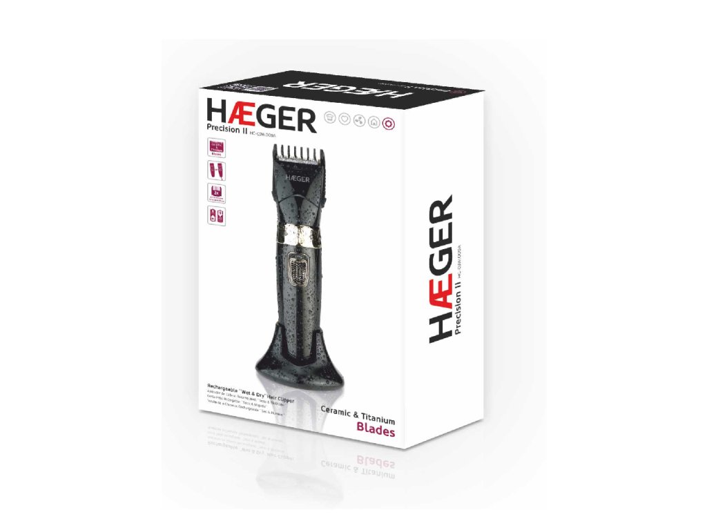 Zastřihovač HAEGER PRECISION II je napájen výkonnou lithiovou baterií zaručující nepřetržitý provoz 45 minut, ale lze jej používat i v síti. Výhodou je jeho použití na mokré nebo suché vlasy.